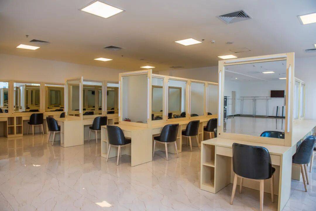 配备 VIP 化妆间、男士化妆间、女士化妆间等专业功能空间,可满足 120 人同时候场梳妆。化妆间内设视频同步显示器,实时呈现舞台演出实况,让演员从容掌控演出进程。