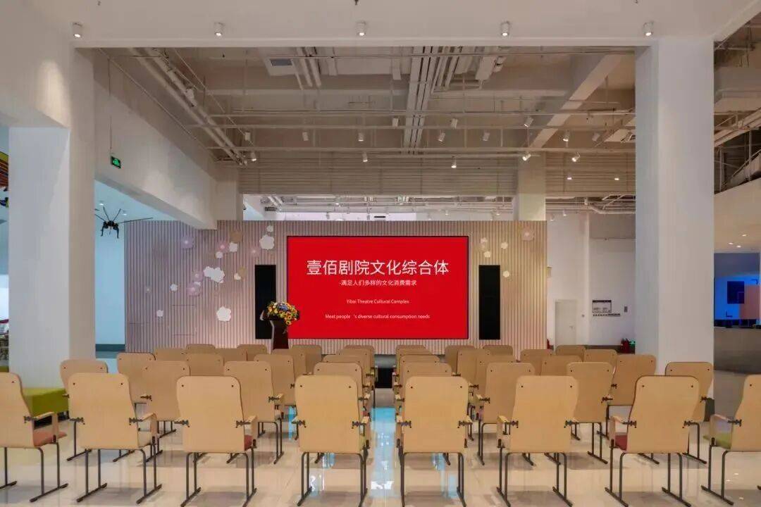 壹佰剧院是壹佰文化商业综合体的主力业态之一。总建筑面积7000㎡,首创五星级剧院服务体系,以超级IP张看戏为核心,打造“文化服务+艺术普及+打卡胜地”相融合的文化消费新场景。